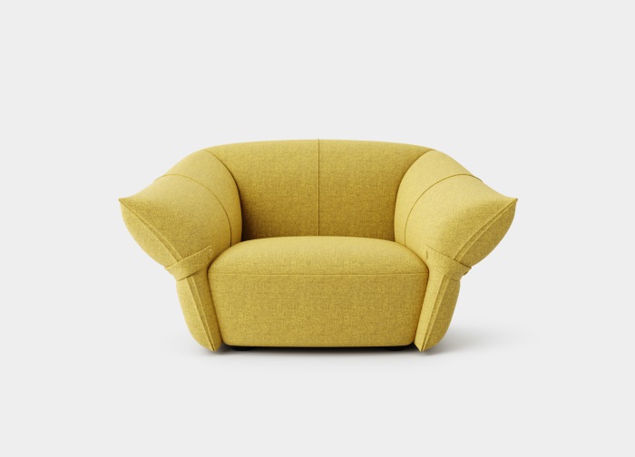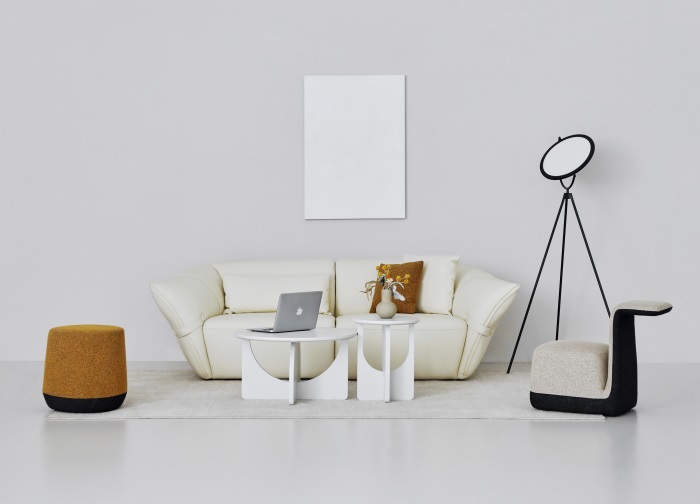 花朵盛开时,花瓣和花蕊会展开,设计师从花朵的外观形象中提炼出花瓣盛开时的姿态,并应用到沙发的设计中。沙发的扶手采用了往外张开的形状,类似于花朵的花瓣展开的姿态,同时扶手上还有滚边点缀,使得整个沙发看起来更加生动有灵性。此外,沙发的扶手还可以作为靠背倾靠,满足人们侧坐时的需求。两侧拉扣的设计将外张的扶手往回收拢,犹如花瓣被花托收拢的形态,使得产品设计更加完整,有生命力。